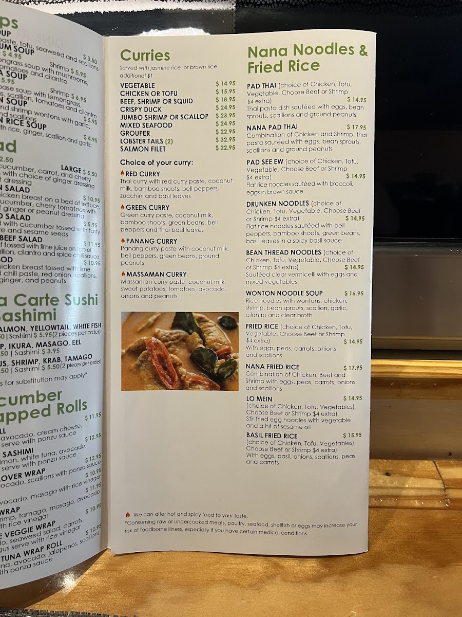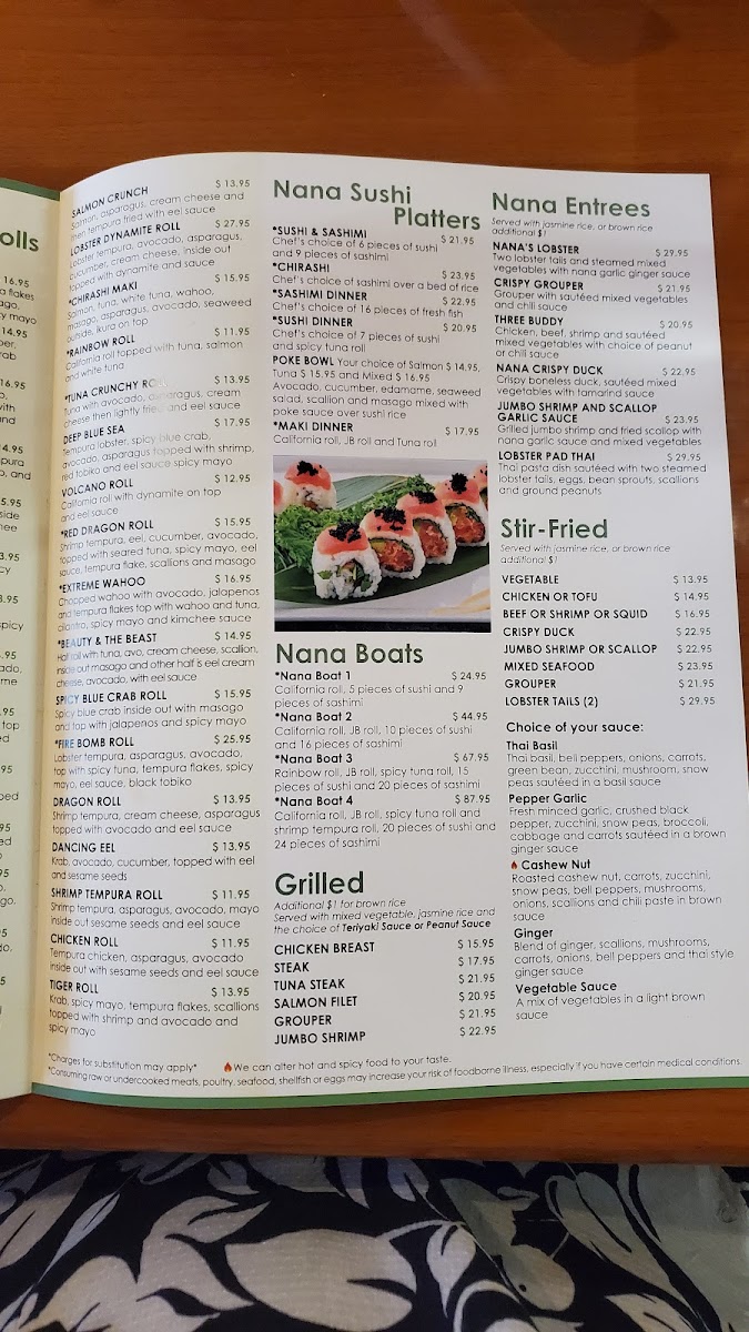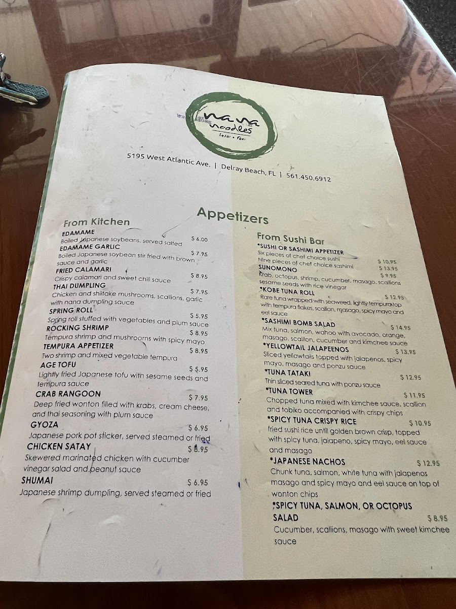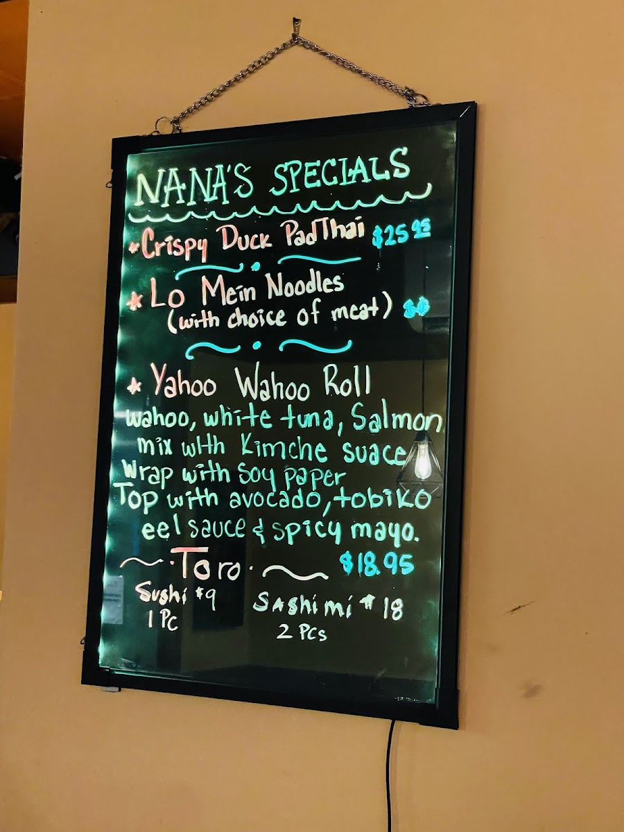 Nana Noodles and Sushi Bar Menu